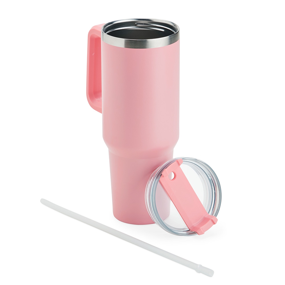 Caneca térmica com capacidade de 1,2 litros feita em inox 304 com parede dupla, contém tampa acrílica rosqueável com acesso para canudo e pegador plástico. Acompanha canudo plástico.