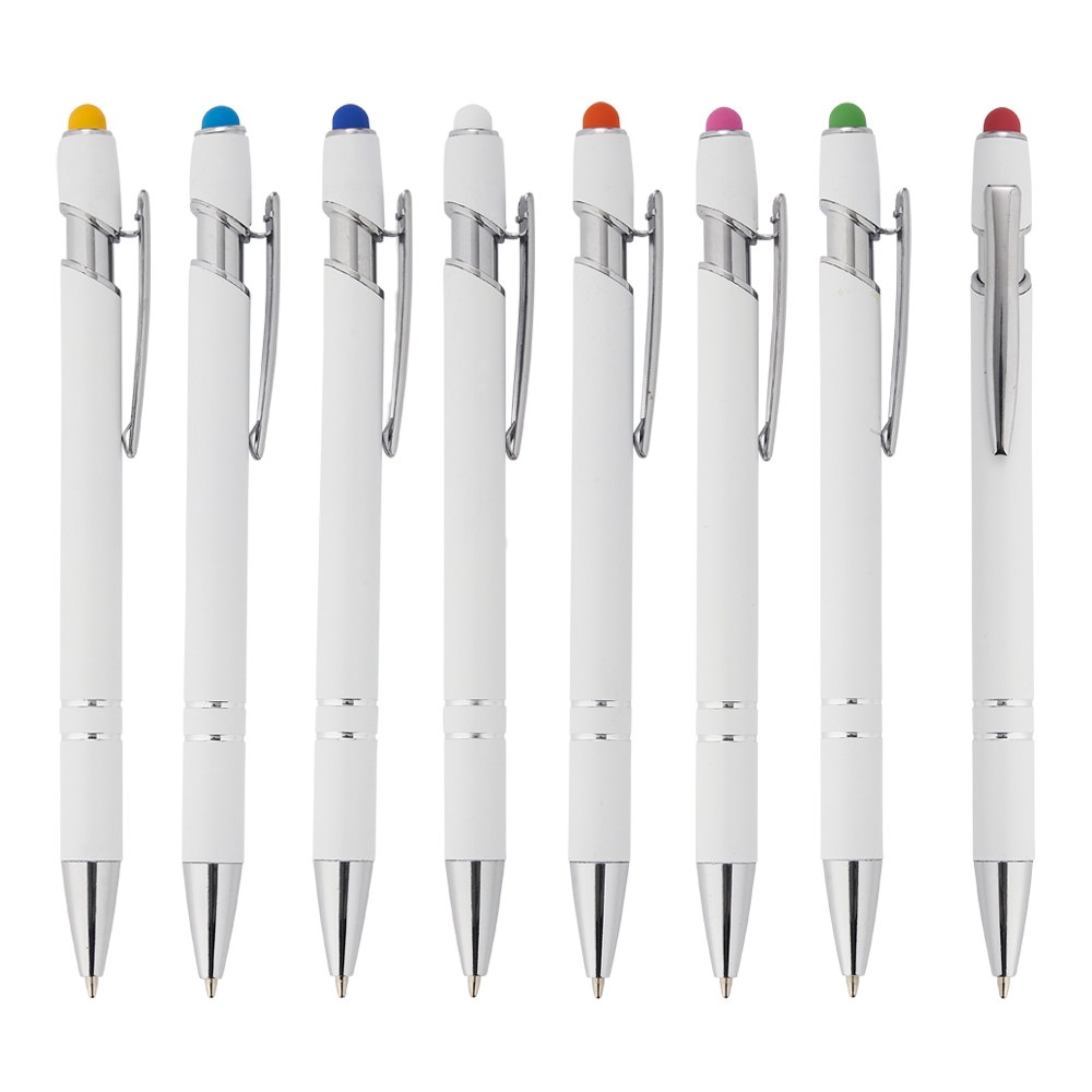 Caneta metálica touchscreen com acionamento por clique, carga esferográfica azul 1.0mm.