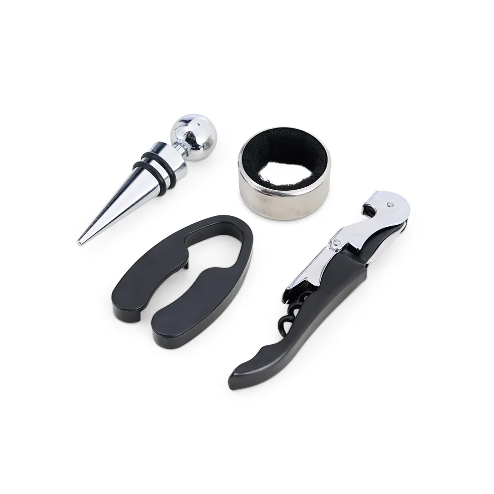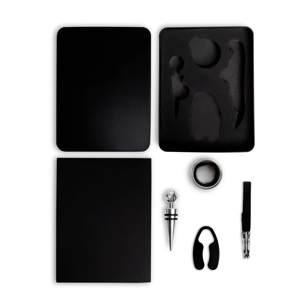 KIT PARA VINHO COM CAIXA EM PAPELÃO RÍGIDO PRETO – 3 PÇS