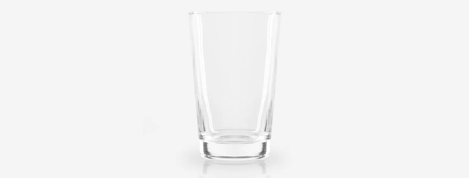 Copo em vidro do tipo Taça de 350ml embalado em caixa kraft individual.