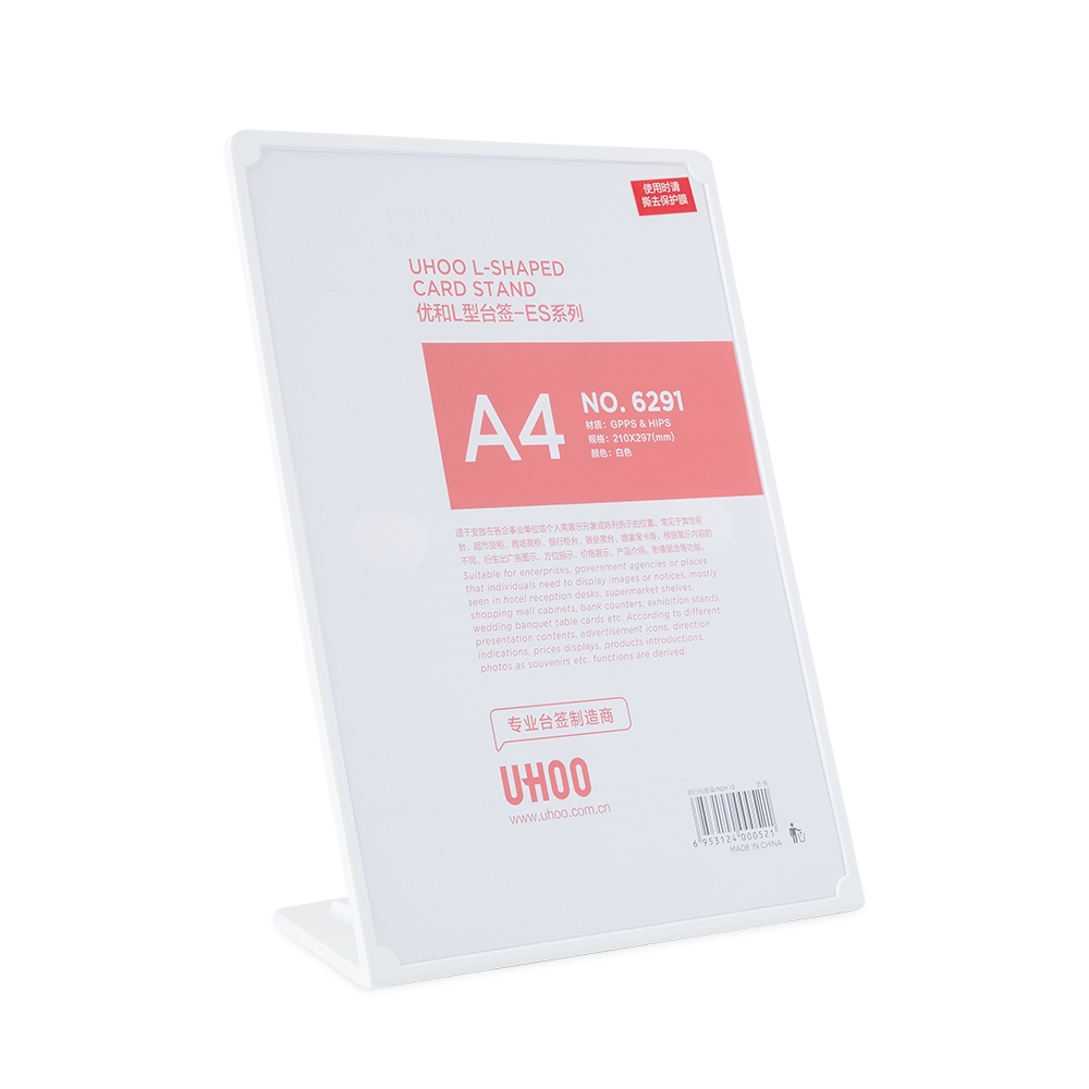 Expositor porta retrato A4 feito em poliestireno com placa acrílica.