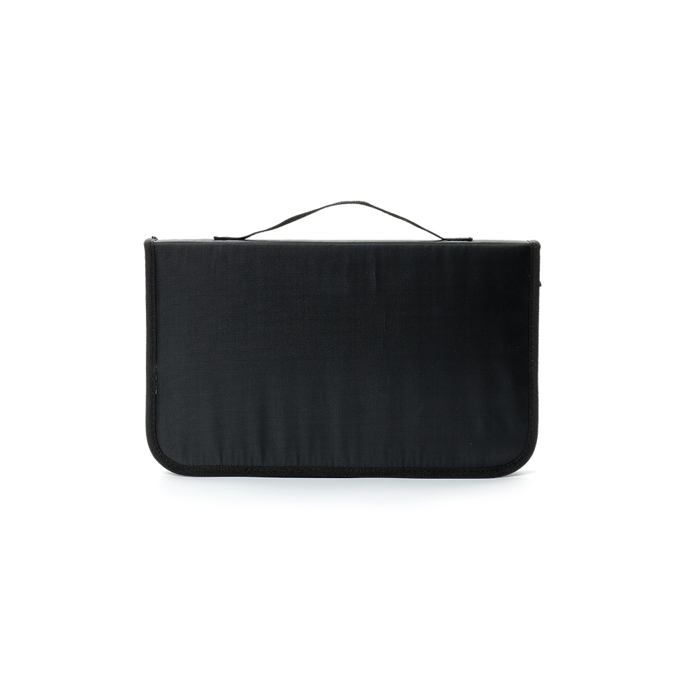 Kit churrasco 5 peças em estojo de nylon com alça e parte interna com elástico para fixar as peças. Possui tábua de madeira com canaleta, três facas de corte e tesoura.