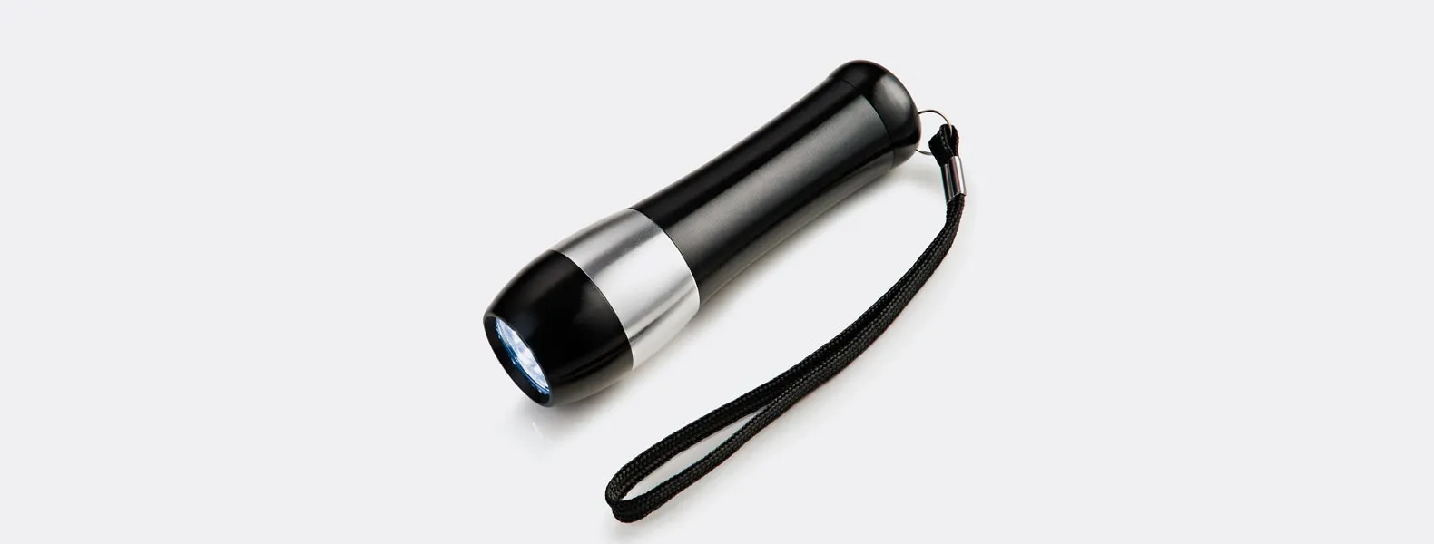 LANTERNA PRETA E PRATA EM ALUMÍNIO PARA PILHAS AAA