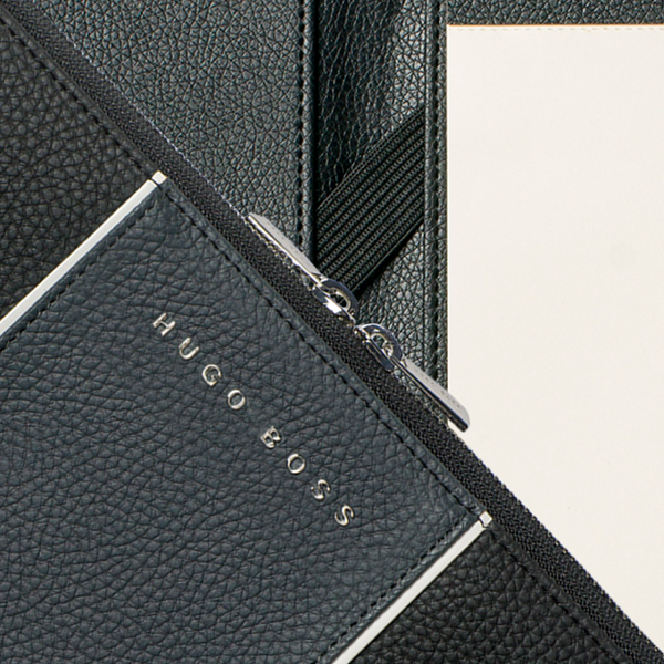 Pasta A4. Blue. Coleção Gear. Com zíper e caderno de 40 folhas. Embalagem "Hugo Boss" inclusa. 245 x 325 x 25 mm