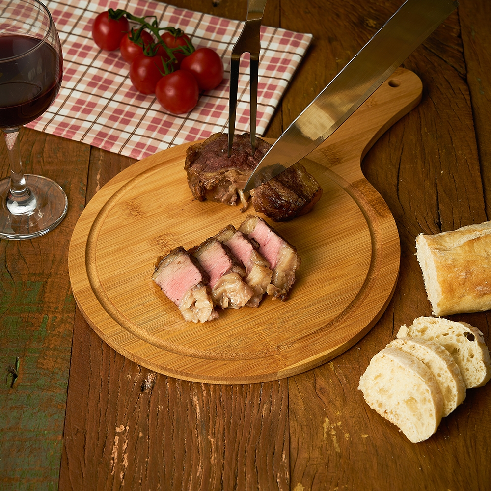 Tábua de bambu média com canaleta e cabo.