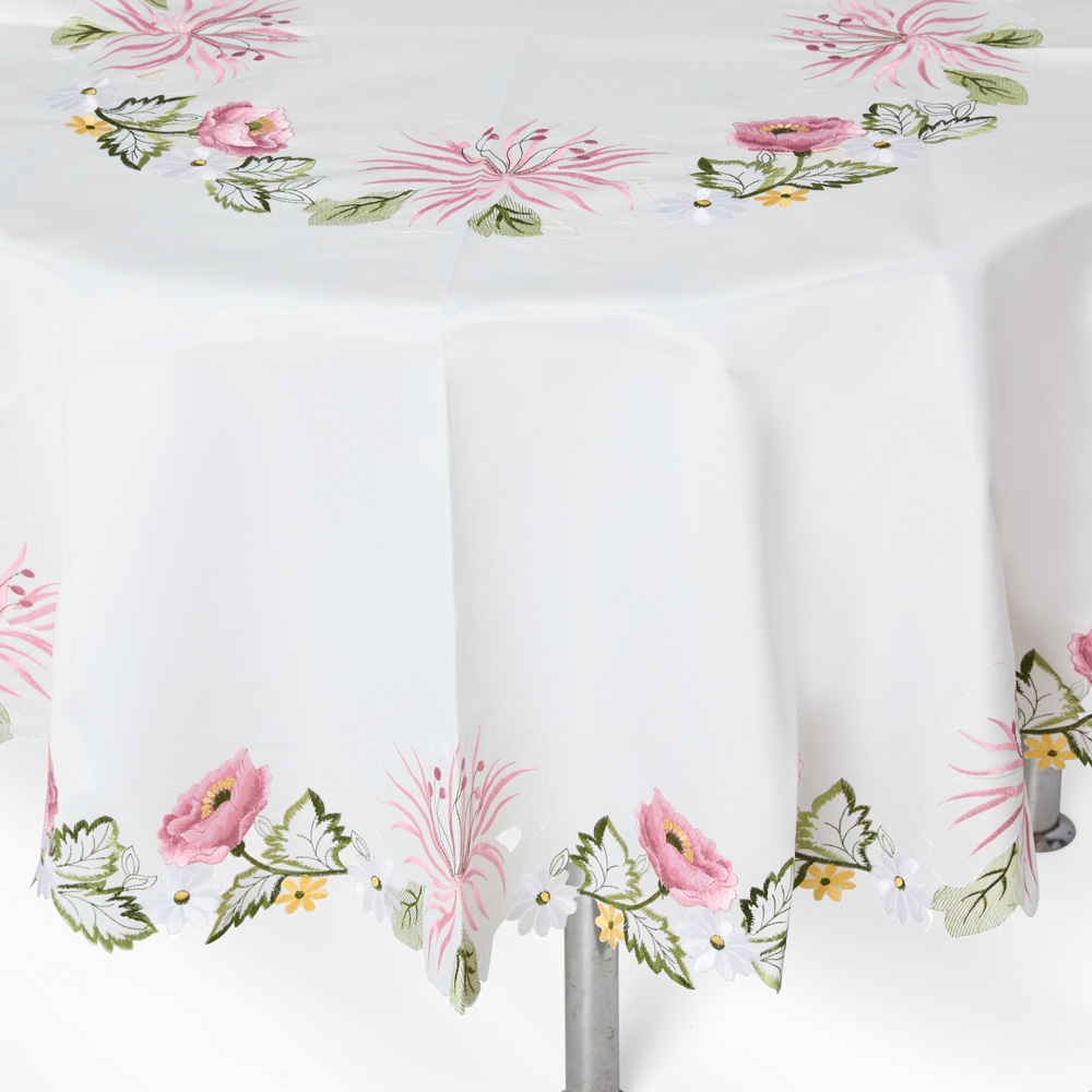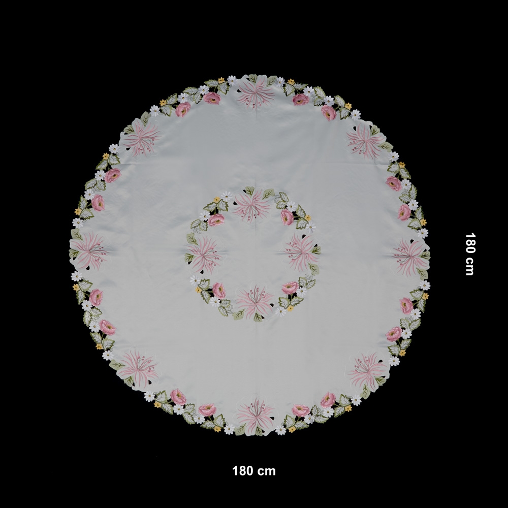 Toalha de Mesa Redonda em tecido 100% Poliéster.